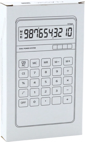 Kalkulator je opremljen z berljivim 10-mestnim LCD zaslonom in širokim naborom funkcij: osnovne matematične operacije, odstotki, kvadratni koren, sprememba predznaka, pomnilnik (MC, MR, M+, M-), tipke ON/AC, OFF, CE in decimalna pika. Naprava deluje v načinu dvojnega napajanja – na baterijo in sončno energijo, kar zagotavlja zanesljivo delovanje v različnih pogojih.