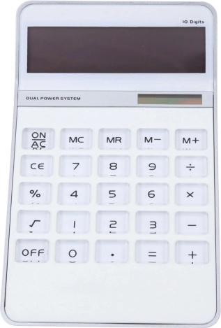 Sodoben pisarniški kalkulator v elegantnem belem ohišju združuje estetiko in funkcionalnost. Njegova minimalistična zasnova in jasno označene tipke ga naredita popolnega za vsako mizo – v pisarni, doma ali v izobraževalnih prostorih.