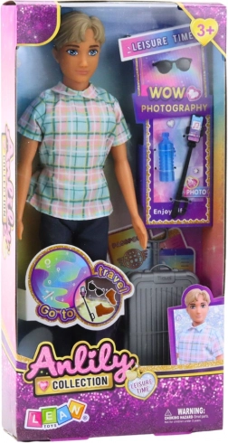 Lutka deček Anlily je oblečena v modno srajco s karirastim vzorcem, temnomodre hlače in rjave čevlje. Na voljo so stilski dodatki, kot so siv kovček na kolescih z izvlečnim ročajem, selfie palica s telefonom, sončna očala in plastenka za vodo.