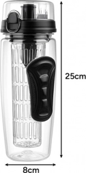 Integrirani sadni infuzor omogoča enostavno aromatiziranje vode, kar podpira zdrav življenjski slog. Ergonomična zasnova z mehkim silikonskim ustnikom je varna za zobe in ponuja udobno pitje.