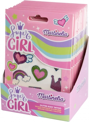 Martinelia bleščeči tatuji za otroke v formatu A5, pakiranje po 12 kos. Varni, kreativni in enostavni za nanašanje.