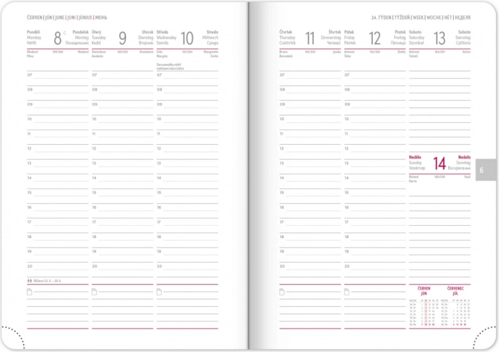 Predstavljamo vam tedenski dnevnik za leto 2026, ki prinaša ne le slog, temveč tudi visoko funkcionalnost. Nežno strukturirana površina z netipičnim reliefom je idealna za vse vrste potiskov, zaobljeni robovi pa dodajajo pridih elegance.