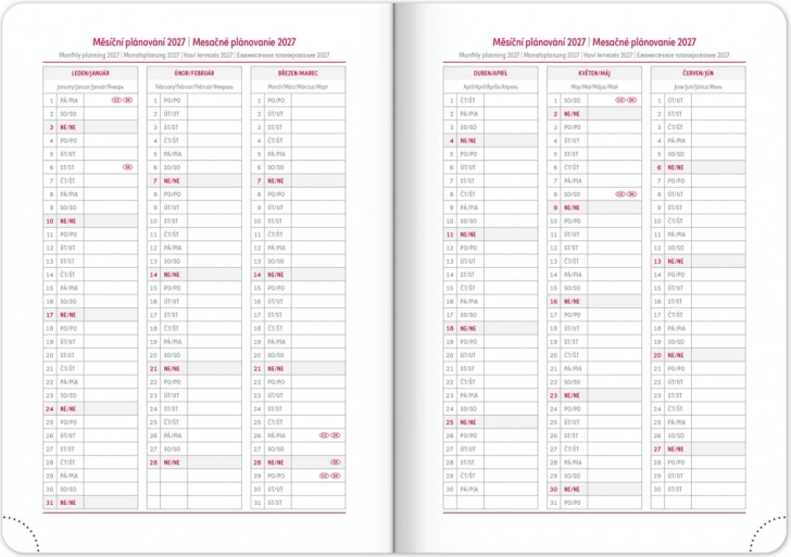 - Mesečni in letni načrtovalni koledar za leti 2026–2027