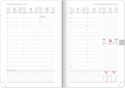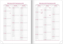 Vsebuje tedenski razpored s češko-slovenskim koledarjem ter dodatnimi jeziki: angleščino, nemščino, madžarščino in ruščino.
