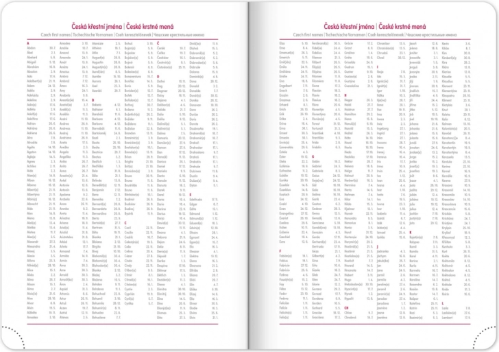 - Vsebuje pomembne praznike in seznam čeških imen.