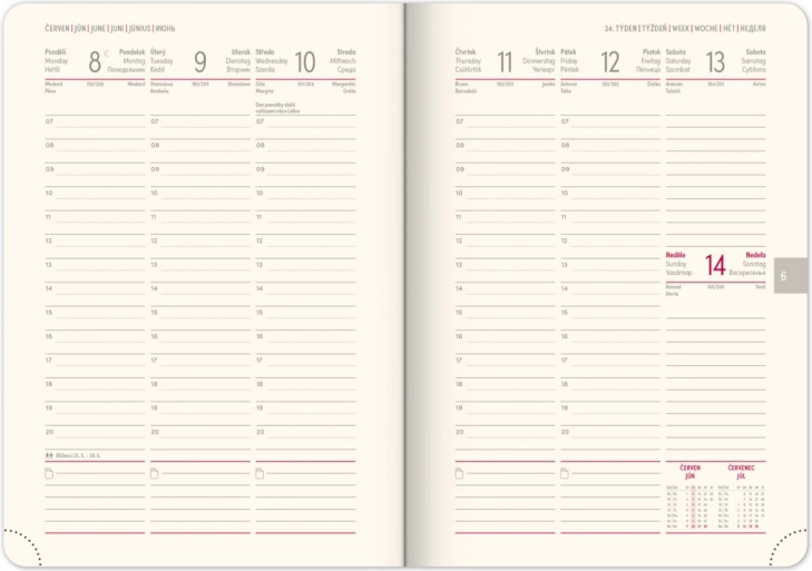 - Večjezični koledar: češko-slovenski z dodatno angleščino, nemščino, madžarščino in ruščino.