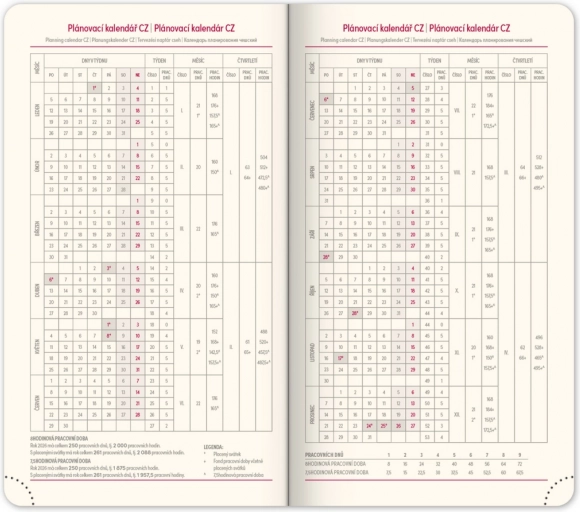 - Tedenski razpored, ki vključuje češko-slovenski koledar ter dodatne jezike: angleščino, nemščino, madžarščino in ruščino.