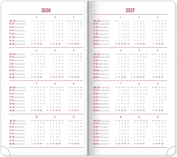 Stilski žepni dnevnik Tomy 2026 v rjavo-rdeči barvi je idealen spremljevalec za vsakodnevno načrtovanje. Njegova klasična površina v imitaciji usnja z nežnimi šivi prinaša eleganco in funkcionalnost, primerna za vse vrste tiska z vtisom.