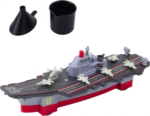 Vojaška ladja s funkcijo pretoka vode je idealna za igro doma. Otroci bodo vzljubili mehanski pogon, ki omogoča gladko premikanje. Posebnost te igrače je učinek pretoka vode, ki se aktivira po napolnitvi integriranega vodnega rezervoarja.
