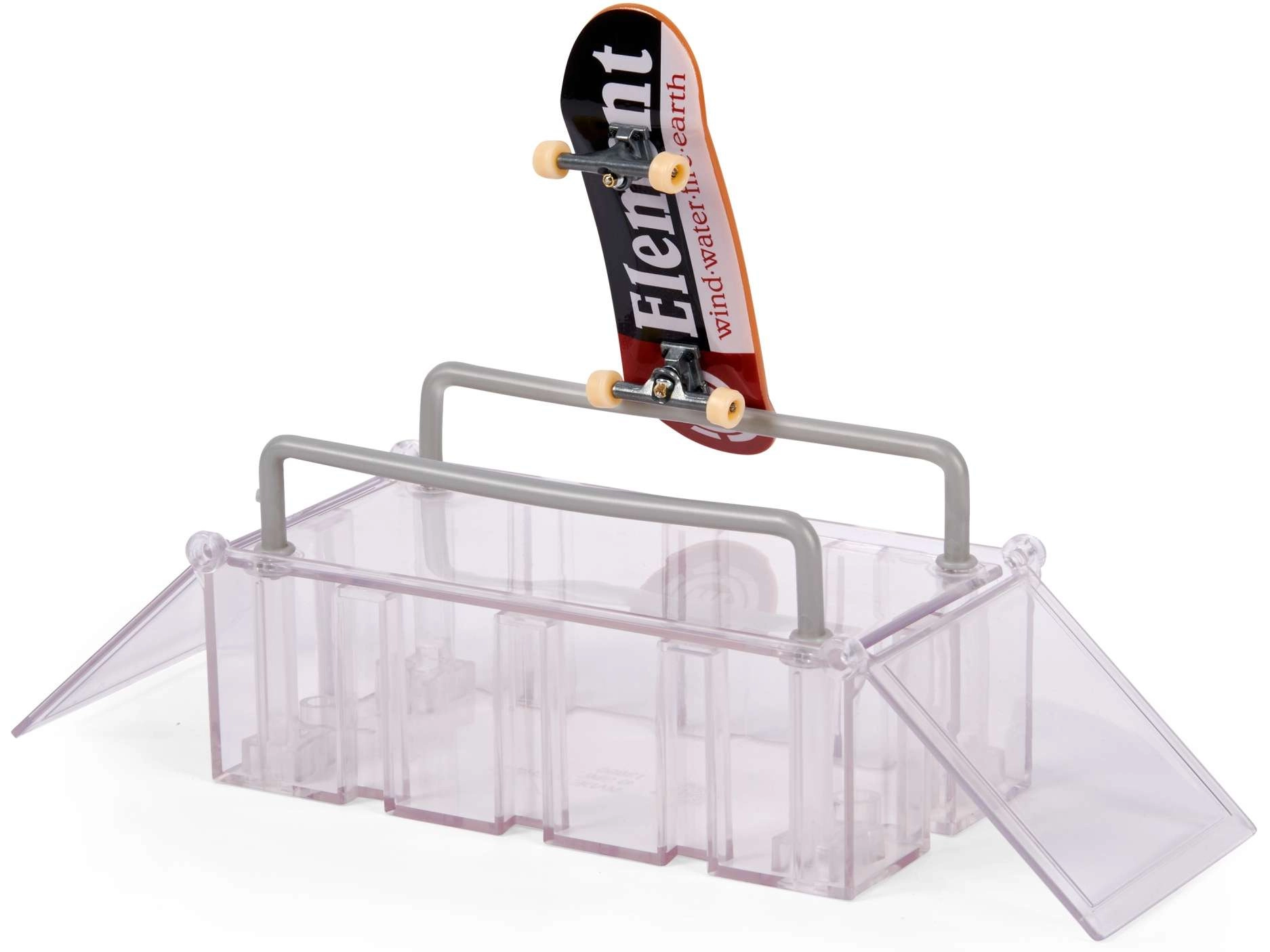 Tech Deck Play and Display je pametna rešitev 2-v-1: stojalo in shranjevalni kovček za tvojo kolekcijo ter popoln fingerboard skejtpark za trike. Konstrukcija crate se preprosto razpre v funbox z rampami in grind ograjami, zato lahko voziš doma ali na poti. Priložen je tudi stajliš fingerboard ELEMENT za takojšnjo vožnjo.