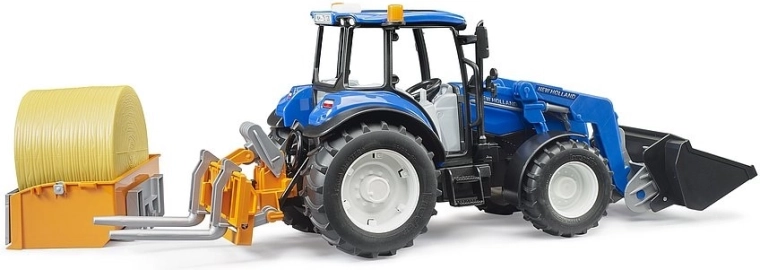 Realističen traktor NEW HOLLAND T5.120 znamke BRUDER v merilu 1:16 bo navdušil male in velike kmete. Ponuja popolnoma funkcionalen čelni nakladač, vzmeteni osi, višinsko nastavljiv vlečni priklop in bogat nabor dodatkov – korito, vilice in okroglo balo sena. Izdelan je iz kakovostne plastike ABS in je primeren za igro doma in na prostem.