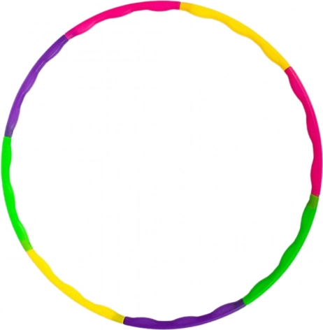 Obroč s premerom 50 cm je sestavljen iz 7 lahkih in enostavno spojljivih delov, kar omogoča hitro montažo ter preprosto prenašanje in shranjevanje – popolno za uporabo doma ali na poti. Barvni segmenti v rumeni, zeleni, vijolični in rožnati barvi dajejo hula hopu privlačen videz in motivacijo za gibanje.