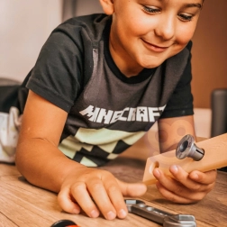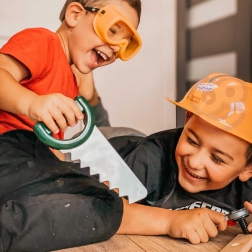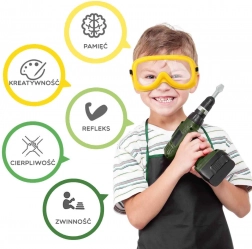 Vrtalnik ima svetlobne in zvočne učinke in zahteva 3 baterije R6/AA (niso vključene). Ta igrača razvija ročne spretnosti, logično razmišljanje in kreativnost.