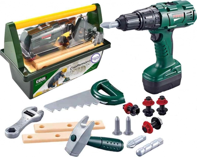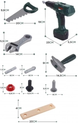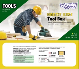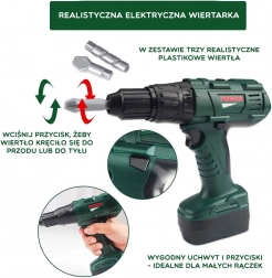 Otroci bodo uživali v odlični zabavi s tem velikim kompletom orodja podjetja Woopie. Zeleni zaboj je opremljen s praktičnim rumenim ročajem za enostavno prenašanje. Igrača je zasnovana za otroke od 3. leta dalje in vsebuje varne plastične komponente.