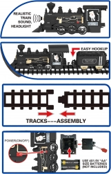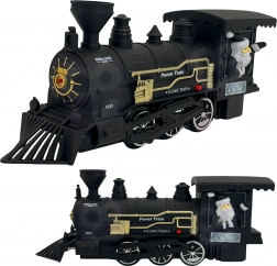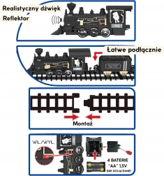 Lokomotiva s svetlečim žarometom in pristnimi zvoki parnega vlaka ustvari privlačno atmosfero in otroke popolnoma pritegne v igro.