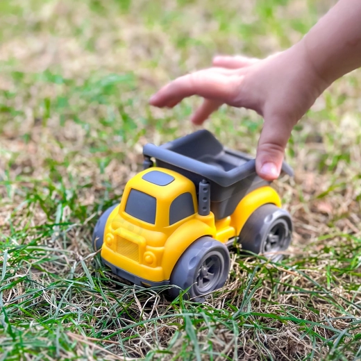 Komplet treh vozil WOOPIE otroke popelje naravnost na gradbišče. Vsako vozilo ima premične dele za avtentične scenarije – mešalec vrti boben, prekucnik dviga in izprazni keson, smetarsko vozilo pa omogoča nakladanje odpadkov. Zahvaljujoč frikcijskemu pogonu je dovolj, da vozilo potisnete, in se samo zapelje, kar spodbuja aktivno igro brez baterij.