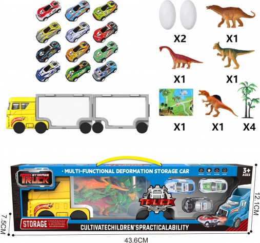 - Velik transporter, dinozavrske figurice, avtomobili, scene, zložljiva podloga