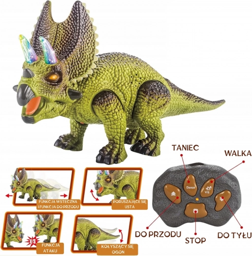 Odkrijte prazgodovinski svet z daljinsko vodenim triceratopsom znamke Woopie! Z realističnimi detajli, svetlečimi rogovi in očmi ter rjovečimi čeljustmi izgleda kot pravi dinozaver. Triceratops se premika naprej in nazaj, pleše in se bori – vse to upravljate z udobnim daljinskim upravljalnikom.