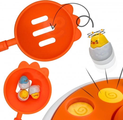 Izstreli piščančka in ga ujemi v lopatko! Akcijski element prinaša dinamično zabavo ter razvija odzive in motorične spretnosti.