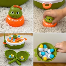Lovite ljubke figurice z magnetno ribiško palico. Otroci vadijo natančnost, potrpežljivost in koordinacijo oko–roka pri zabavnem lovu.