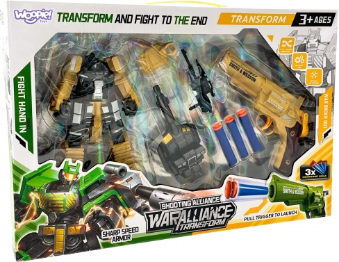 Woopie 3v1 transformacijski robot, tank in pištola za penaste puščice – rjav