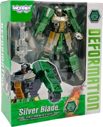 Pripravite se na izjemno avanturo s transformirajočim robotom Silver Blade znamke Woopie! Ta edinstvena igrača ponuja dvojno vznemirjenje – mogočen robot bojevnik, ki se v trenutku spremeni v robustno vojaško vozilo, kot je tank ali transporter.