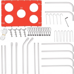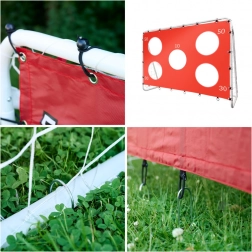 Tarčna mreža vsebuje različne odprtine, ki so točkovno označene, kar podpira tehniko strela in spodbuja športno tekmovalnost. Ne zamudite priložnosti, da prenesete nogometno vzdušje na svoj vrt s pravilnimi merami za otroke in odpornostjo na vremenske vplive.