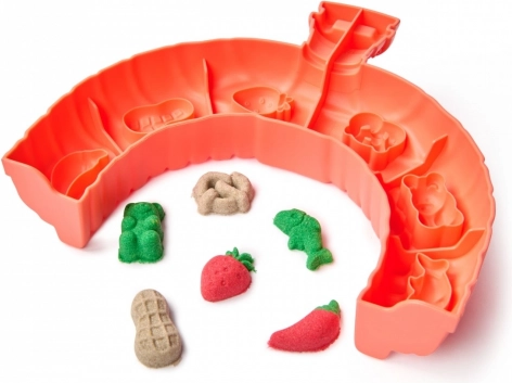 Mešajte barve, ustvarjajte zelenjavo, salamo in zabavne sestavine. Kinetični pesek drži obliko, odlično se reže in nikoli ne presahne.