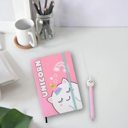Odkrijte čar zvezka s čudovitim enorogom, ki je popoln dodatek za vsakogar, ki obožuje fantastične motive. Ta zvezek v trdi vezavi zagotavlja dolgo življenjsko dobo in vzdržljivost, medtem ko je kompaktni format A5 idealen za nošenje s seboj kamorkoli.