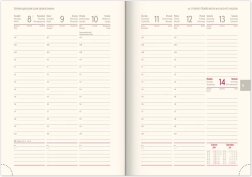 Stilski tedenski dnevnik Rivoli 2026 v rožnati barvi združuje praktično zasnovo z modernim in trpežnim izvedbo. Odlikuje ga češko-slovenski koledar z dodatnimi jeziki ter čvrst elastični trak za varno zapiranje.