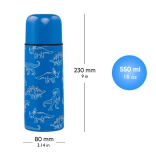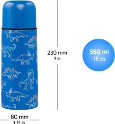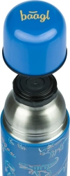 Termo steklenica Dino znamke BAAGL ponuja edinstven dizajn, navdihnjen s trenutnimi trendi, ki se ujema z drugimi izdelki za učence nižjih razredov osnovne šole. Opremljena je z navojnim pokrovčkom, ki ga je po odprtju mogoče uporabiti kot lonček za pijačo.