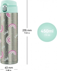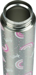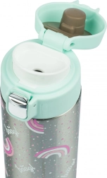Uživajte v slogu in praktičnosti s to termo steklenico, ki ponuja preprosto odpiranje in vgrajen silikonski ustnik. S prostornino 450 ml je popolna za vsakodnevno uporabo. Steklenica je na voljo v več igrivih dizajnih, ki jih zlahka uskladite z ostalo šolsko opremo.