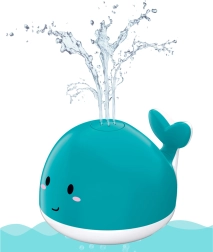 - Vrti se, plava na površini vode in šprica vodo, s čimer ustvari mini fontano.