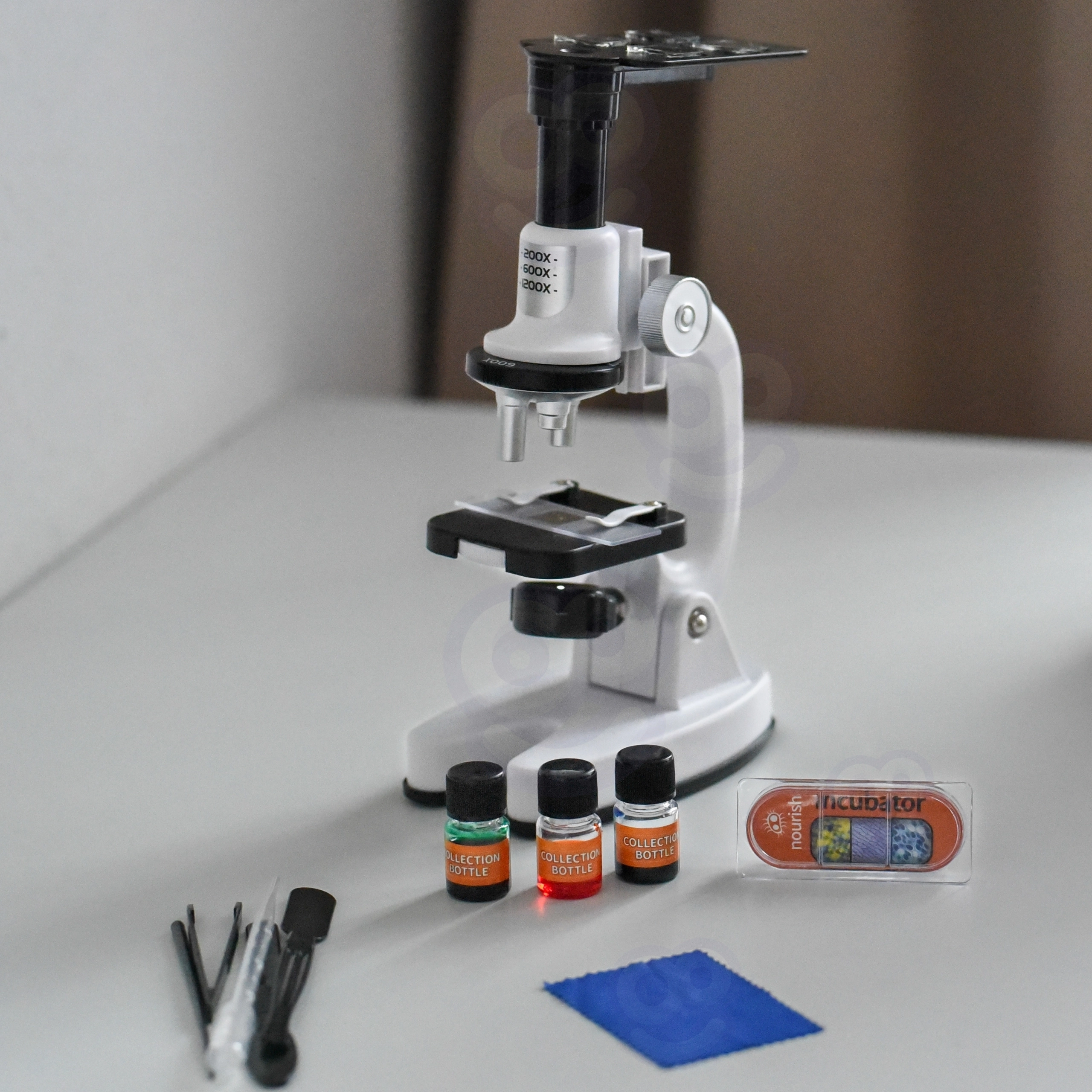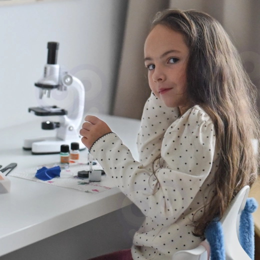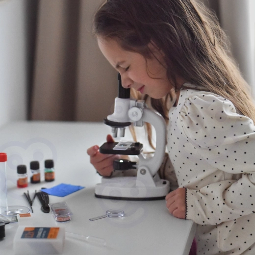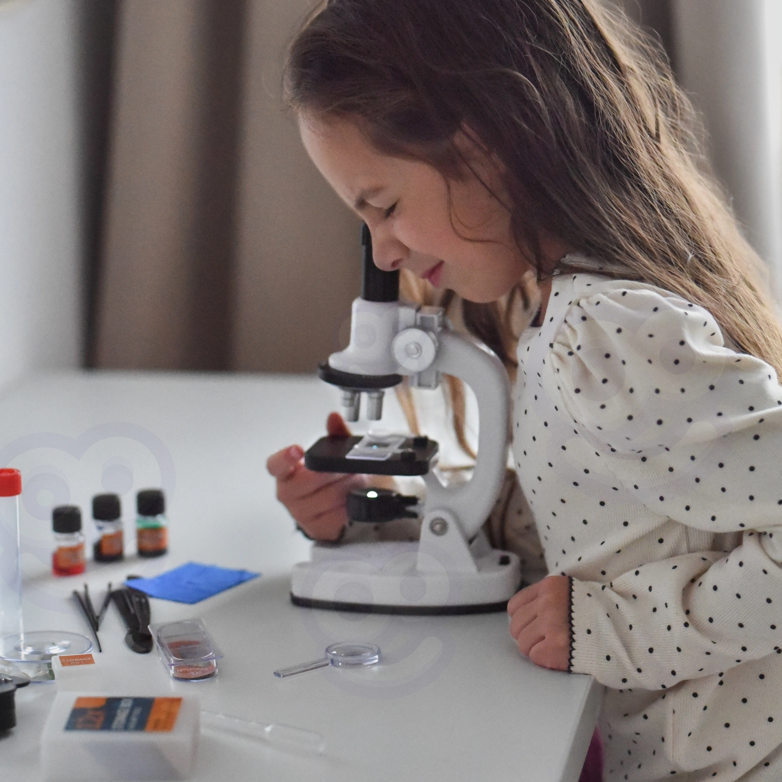 Ta kompaktni mikroskop je popolna izbira za prvo domačo laboratorijsko izkušnjo. Zahvaljujoč trem stopnjam povečave 200x / 600x / 1200x, vgrajeni LED osvetlitvi in vrtljivemu barvnemu filtru bodo otroci zlahka videli strukture rastlinskih celic, vlaken in drobne podrobnosti majhnih vzorcev.