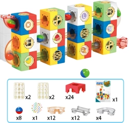 Povezujte kocke in prozorne cevi v lastne večnadstropne steze. Otroci razvijajo ustvarjalnost, logiko in načrtovanje.