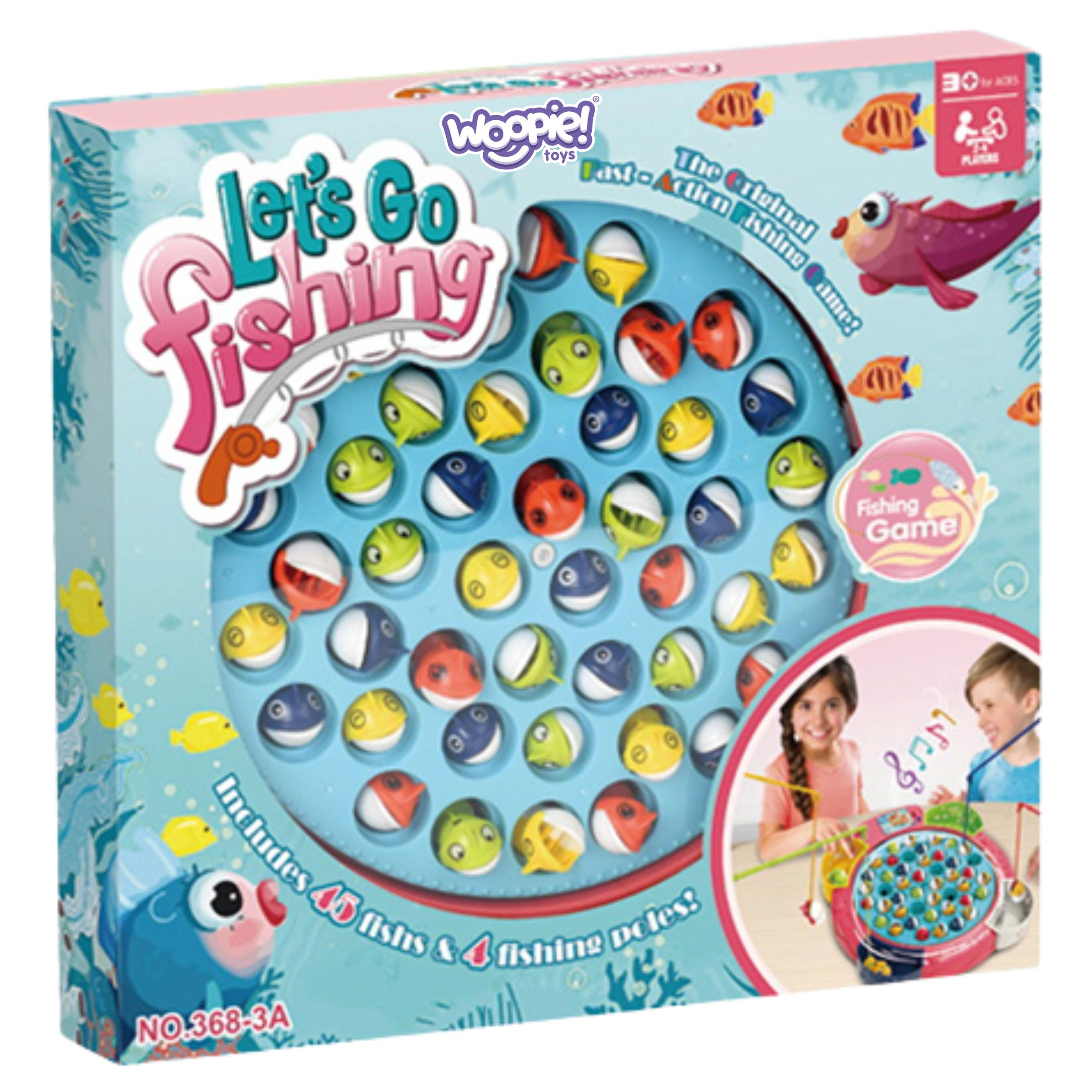 WOOPIE Ribiška igra je zasnovana tako, da je zabavna in varna za naše najmlajše igralce. Visoka kakovost uporabljenih materialov zagotavlja popolno varnost in enostavno montažo. To je interaktivna igra, kjer se plošča vrti in ribe odpirajo usta, da jih lahko ulovite. Igra je primerna za otroke od 3 let in jo lahko igrajo do 4 igralci.
