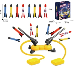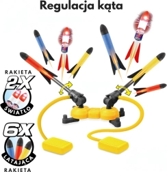 Dvojni penasti izstreljevalnik raket je idealen za aktivno zabavo na vrtu, v parku ali na otroškem igrišču. Raketke so lahke, izdelane iz mehke pene in varne za otroke, obenem pa ob vsakem izstrelitvi poskrbijo za veliko vznemirjenja. Nastavljivi izstreljevalniki omogočajo poljubno nastavitev kota (od 30° do 90°) in smeri izstrelitve.