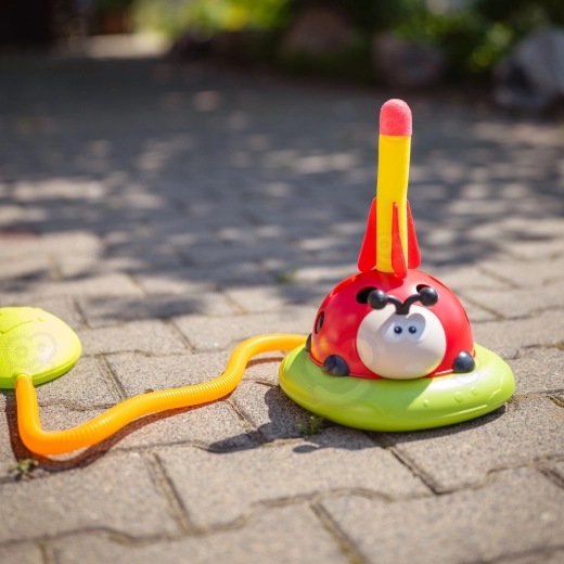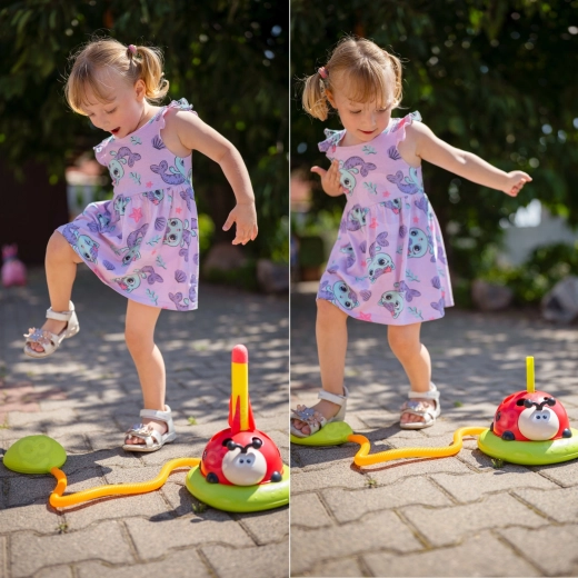 S to pisano »pikapolonico« bodo otroci urili spretnost in doživeli veliko gibanja. 3 aktivnosti v 1 pomenijo konec dolgočasja: preskakovanje vrteče se roke, izstreljevanje mehke rakete s stopom na črpalko in natančno metanje obročev na cilje. Igra je primerna od 3. leta, je vzdržljiva, varna in motivira k aktivnemu preživljanju časa na vrtu, igrišču ali v dnevni sobi.