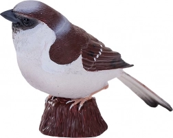 Ta natančno izdelana figurica vrabca zvesto posnema videz prave ptice – od finega perja do naravnih barv. Ročna poslikava poudari realističen vtis in jo naredi privlačen dodatek za male raziskovalce, starše in strastne zbiratelje.