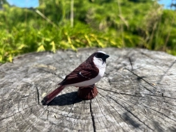 Natančno modeliranje in ročna poslikava poudarjata realistične lastnosti vrabca – od teksture perja do pristnega barvanja.