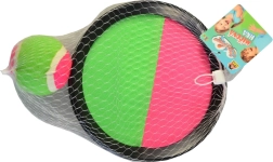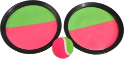 Uživajte v zabavnih urah igre na prostem z Catch Ball. Ta igra je odlična za zabavo tako poleti ob vodi kot tudi pozimi med prijetnim dnem na prostem. V kompletu sta dva plastična krožnika s površino iz ježka in žogica, ki se nežno pritrdi na krožnik. Dovolj je, da en igralec vrže žogico, drugi pa jo s pomočjo krožnika ujame.