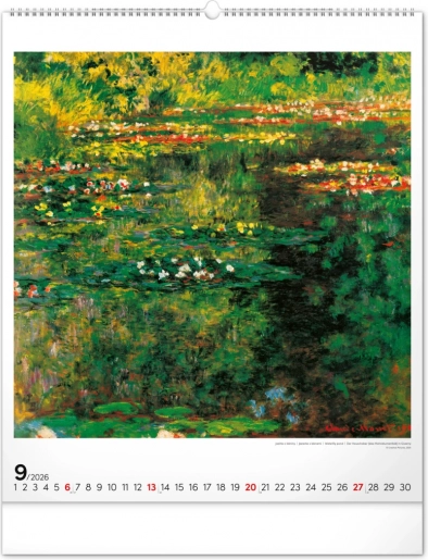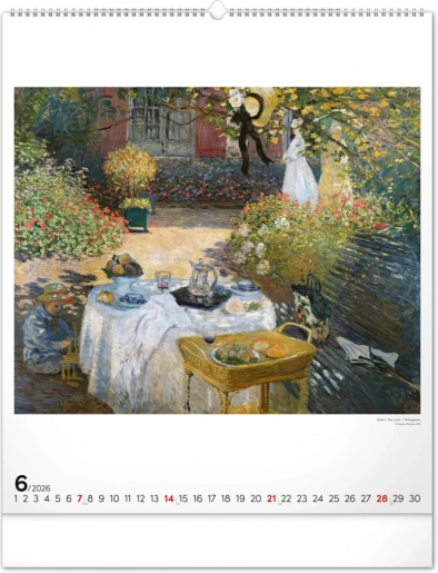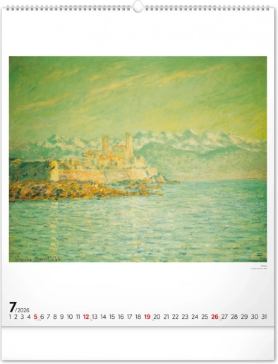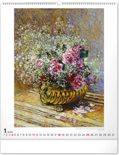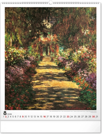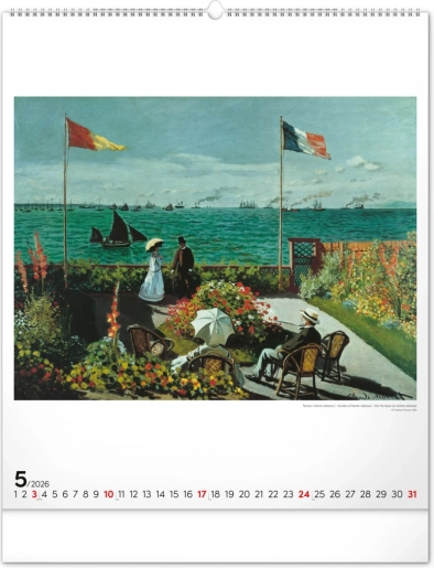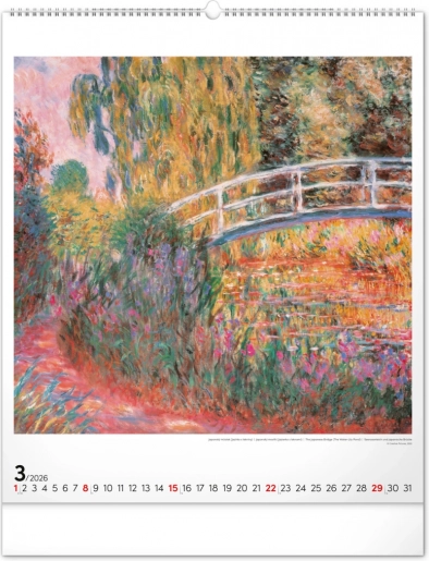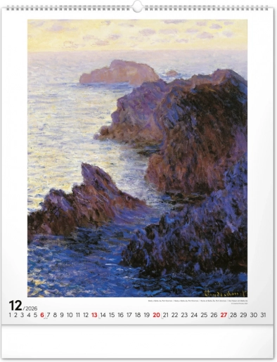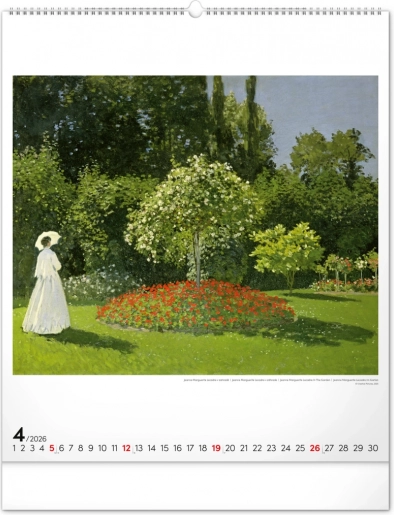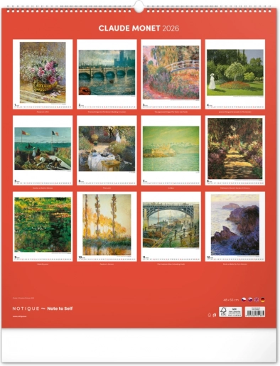 Če občudujete dela Clauda Moneta, je ta stenski koledar kot nalašč za vas. Vsak mesec prinaša novo sliko iz njegove bogate galerije, polne svežih krajinskih prizorov in figur.