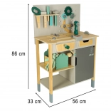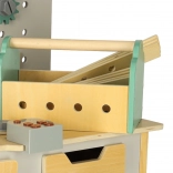 Komplet orodja za otroke vključuje mini orodja za vadbo fine motorike in varno okolje, kjer si otrok pridobi veščine, potrebne za delo z orodjem. S tem kompletom se bo otrok naučil razlikovati orodja in razumel pravila dela z njimi.