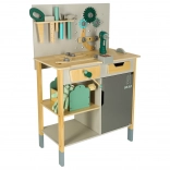 Izobraževalna vrednost: Primerno za domače ali šolsko okolje, kjer širok izbor orodij omogoča neskončne scenarije iger. Del kompleta je tudi mizica, žaga, izvijač, kladivo in še veliko drugega, vključno z daljinskim upravljalnikom z zvočnimi učinki.