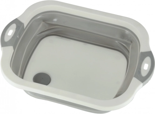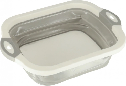 Zložljiva silikonska skleda z odtokom volumna 5,5 l je idealen pomočnik pri kampiranju, ki širi prostor v tvojem avtodomu. Ko je zložena, je minimalna in praktična za shranjevanje v nahrbtniku ali omari.