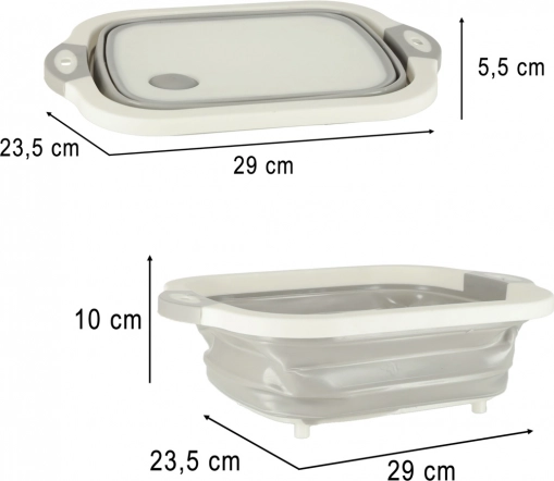 Zložljiva silikonska skleda je idealna rešitev za kampiranje, izlete in kuhanje v naravi. Je praktična kombinacija 4 v 1 – skleda, deska za rezanje, odcejevalnik in taborniško korito. Prihrani prostor in čas s svojim pametnim dizajnom.