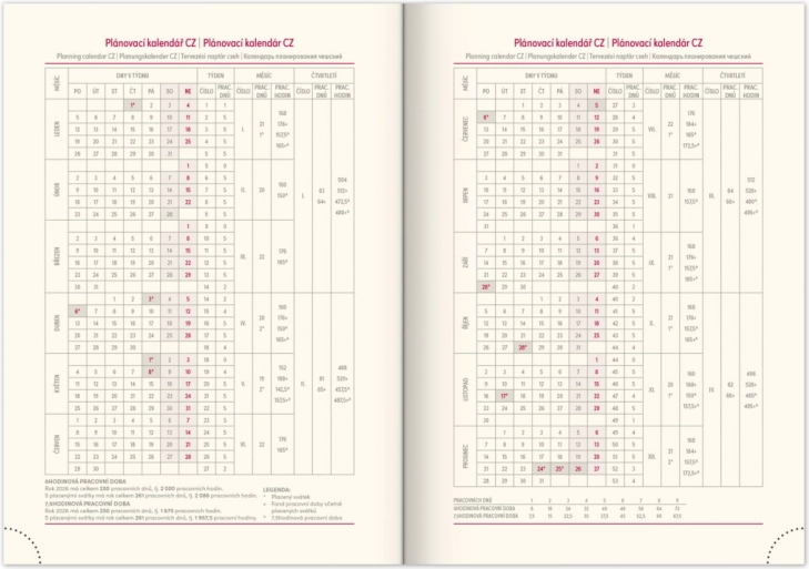 Eleganten rožnat dnevnik NOTIQUE Rivoli za leto 2026 je zasnovan za sodobnega uporabnika. Vključuje čvrst elastičen trak, zanko za pero in dnevni razpored s češko-slovaškim koledarjem, dopolnjenim z angleščino, nemščino, madžarščino in ruščino.
