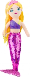 Plišasta morska deklica ima dolge, rumene kodraste lase in rožnato krono. Vijolični bleščeči top dopolnjuje estetski in pravljični videz, ki je idealen ne le kot igrača, temveč tudi kot dekoracija otroške sobe.