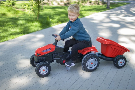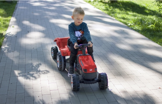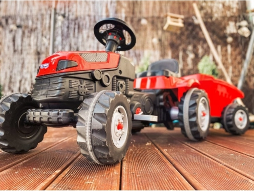 Pedalni traktor Farmer GoTrac MAXI s prikolico je idealno darilo za vsakega otroka. Opremljen je z patentiranim sistemom krmiljenja, ki olajša vožnjo tudi najmlajšim uporabnikom.