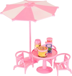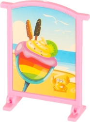 V kompletu je bogat nabor dodatkov: mizice, stolčki, senčnik, reklamno stojalo ter veliko drobnih dodatkov, kot so lončki, kozarčki, sladoledi, lonček za kavo in pladenj. Lahka in trpežna plastična zasnova je kot nalašč za vsakodnevno igro doma in na poti.